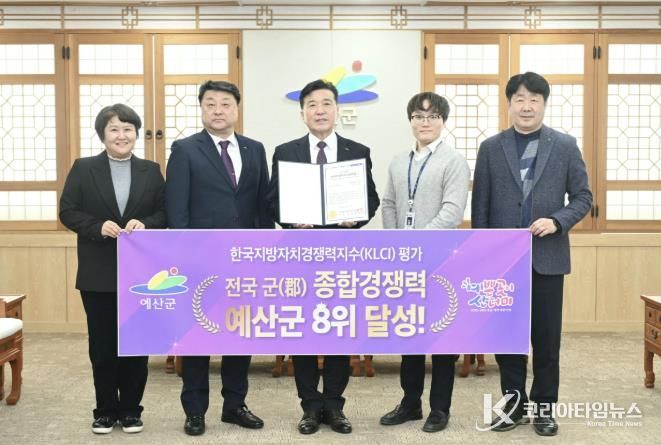 코리아타임뉴스 김택호 기자 | 예산군은 (사)한국공공자치연구원이 발표한 ‘2025년 한국지방자치경쟁력지수(KLCI)’에서 군 단위 종합경쟁력 부문 508.1점을 기록하며 전국 82개 군 가운데 종합 8위를 차지했다고 밝혔다.