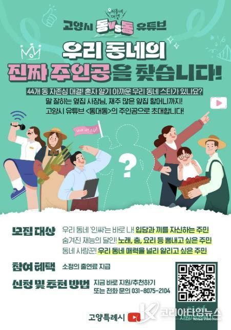 코리아타임뉴스 기동취재팀 | 고양특례시가 44개 동 주민들이 직접 주인공으로 참여하는 신규 유튜브 예능 콘텐츠 ‘동대동(우리 동네 대결)’의 본격적인 제작을 앞두고 ‘우리 동네 대표 선수’를 모집한다고 9일 밝혔다.