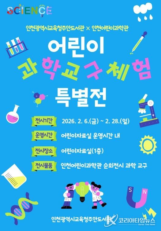 코리아타임뉴스 사회팀 | 인천광역시교육청주안도서관은 오는 28일까지 어린이자료실에서 ‘어린이 과학교구 체험 특별전’을 운영한다.