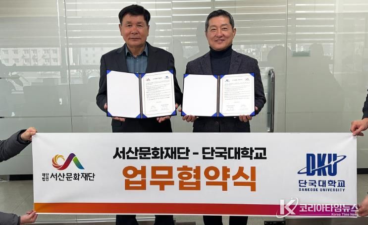 코리아타임뉴스 김택호 기자 | 서산문화재단은 지난 12월 단국대학교 정책경영대학원과 상호 협력체계 구축과 교류 확대를 통한 공동 발전을 도모하고자 교류협력 협약(MOU)을 체결했다고 밝혔다.