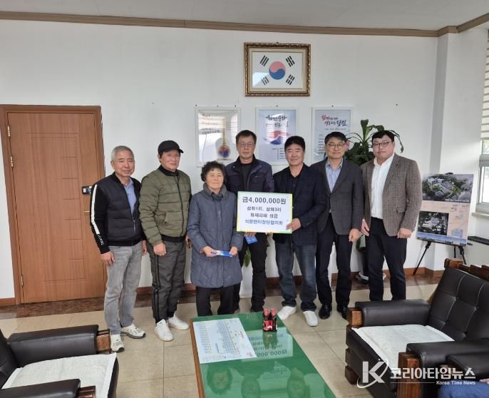 코리아타임뉴스 김택호 기자 | 당진시는 석문면 이장단협의회가 지난 12일 석문면 행정복지센터를 방문해 올겨울 화재 피해를 입은 2가구에 성금 400만 원을 전달했다고 밝혔다.
