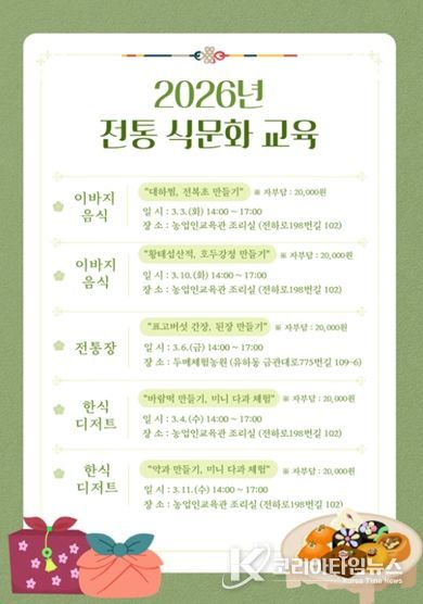 코리아타임뉴스 오영주 기자 | 김해시는 3월 3일부터 3월 11일까지 ‘2026년 전통 식문화 교육’을 운영한다고 밝혔다.
