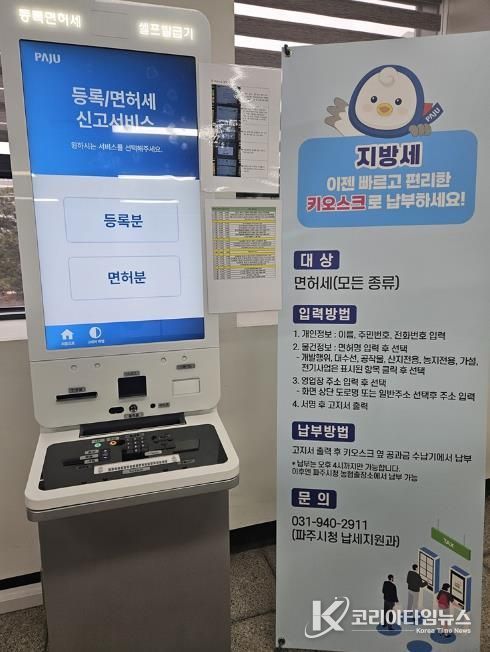 코리아타임뉴스 윤광희 기자 | 파주시는 납세자가 여러 기관을 오가야 했던 기존 세금 신고 절차의 불편을 해소하고자 파주시청 민원동과 파주등기소에 무인민원발급기 운영을 개시한다.