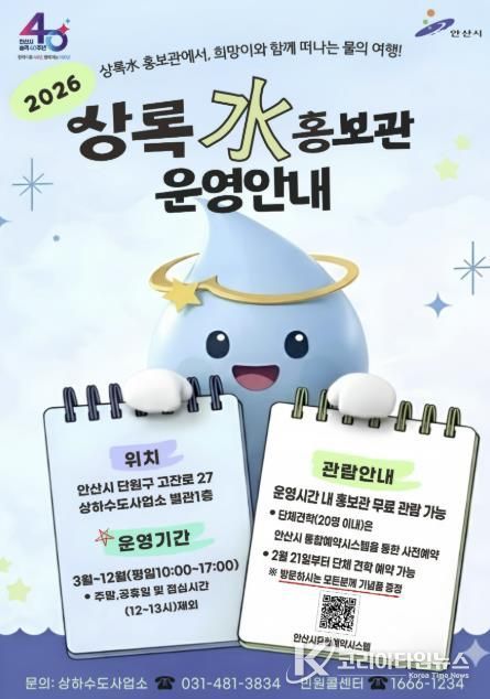 코리아타임뉴스 윤광희 기자 | 안산시는 오는 3월 3일부터 시의 수돗물 상록수(水) 홍보관 운영 재개에 나선다고 19일 밝혔다.
