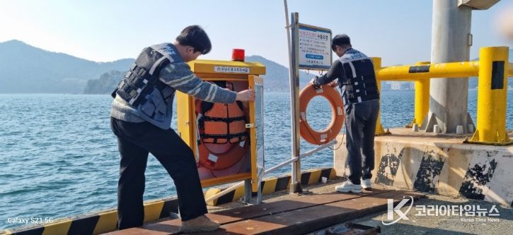 점검 대상은 장천항 계류시설, 방파제 등 6개소, 속천항 물양장, 호안 등 4개소로, 항만 주요 시설물의 안전 상태를 선제적으로 점검했고, 안전난간구명부환구명로프 등 안전시설물의 설치비치관리상태를 확인했다.