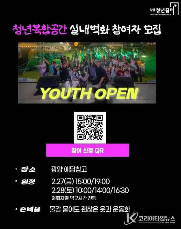 코리아타임뉴스 전남취재본부 | 광양청년꿈터는 청년이 공간 조성에 직접 참여하는 ‘청년복합공간 실내벽화 프로젝트’ 참여자를 모집한다고 밝혔다.