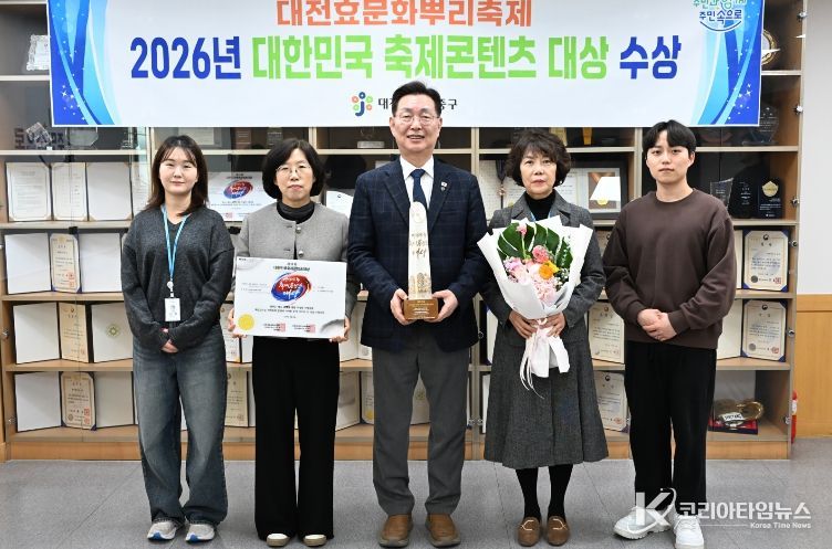 코리아타임뉴스 대전취재본부 | 대전 중구는 지난 24일 서울 피스앤파크 컨벤션센터에서 열린 2026년 제14회 대한민국 축제콘텐츠 대상 시상식에서 대전효문화뿌리축제가 축제 문화유산·역사 부문 대상을 수상했다고 밝혔다.