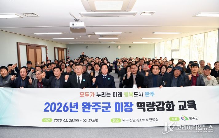 코리아타임뉴스 전북취재본부 | 완주군이 지역사회를 이끌어갈 핵심 리더들의 역량을 강화하기 위해 ‘2026 완주군 이장 역량강화교육’을 열었다.