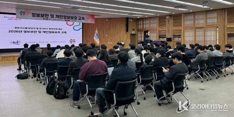 코리아타임뉴스 충남취재본부 | 논산시는 26일 시청 회의실에서 정보시스템 담당자와 유지보수 참여 인력 105명을 대상으로 ‘정보보안 및 개인정보보호 교육’을 실시했다.