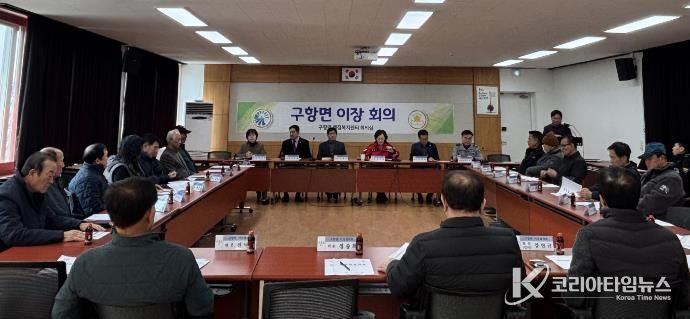 이날 회의에는 배미자 구항면장을 비롯한 각 마을 이장이 참석해 봄철 주요 현안과 주민 생활과 밀접한 행정사항을 공유했다.