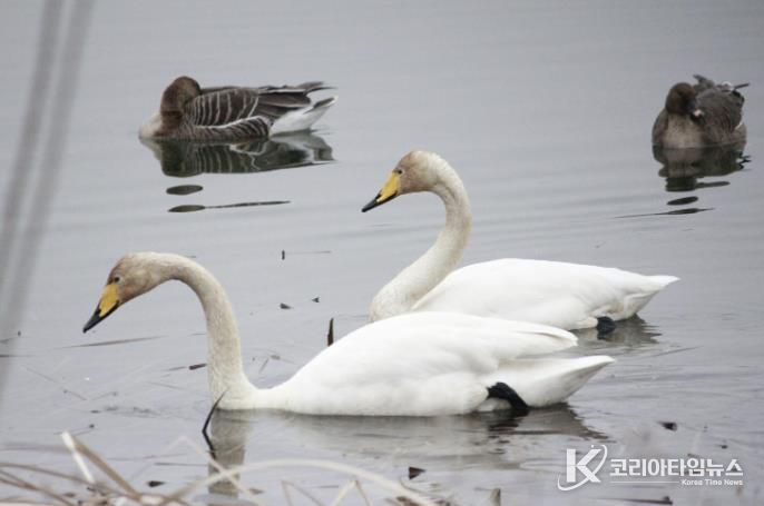 코리아타임뉴스 윤광희 기자 | 의왕도시공사에서 위탁 운영 중인 조류생태과학관이 왕송호수 일대에서 실시한 생태환경 모니터링 과정에서 멸종위기야생생물 2급이자 천연기념물 제201-2호로 지정된 큰고니(Cygnus cygnus, 백조)를 관찰했다고 밝혔다.