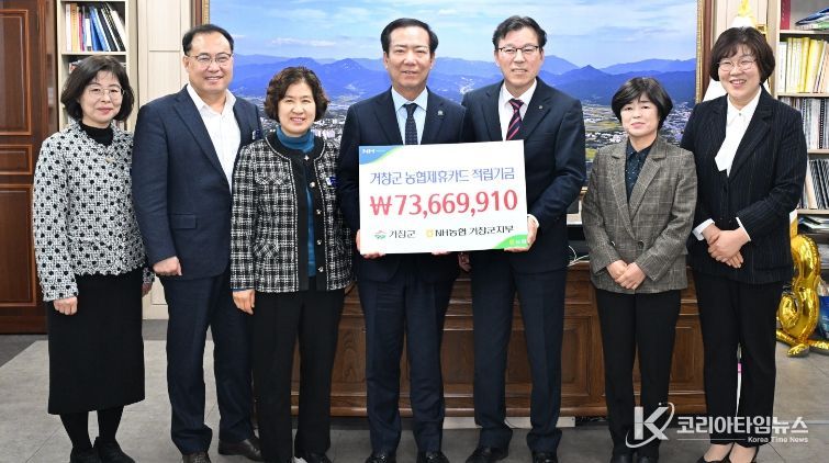 코리아타임뉴스 오영주 기자 | 거창군은 지난 9일, NH농협은행 거창군지부에서 거창군청을 방문해 거창군 제휴카드 적립기금 7,366만 원을 전달했다고 밝혔다.