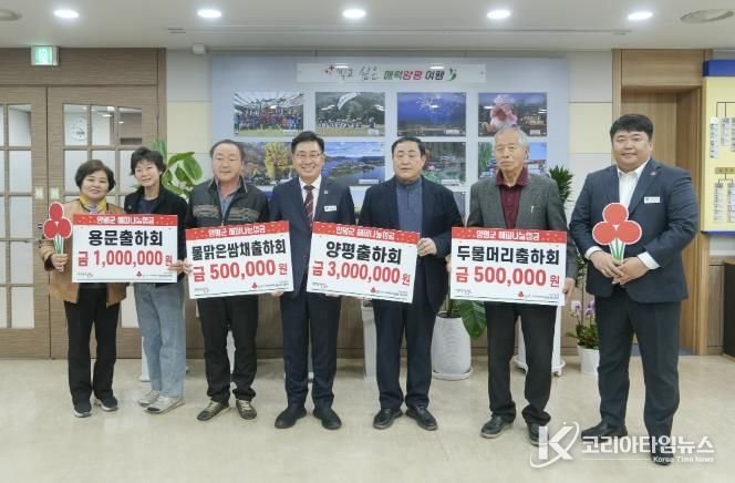코리아타임뉴스 기동취재팀 | 양평군은 지난 9일 양평출하회 300만 원, 용문출하회 100만 원, 두물머리출하회 50만 원, 물맑은쌈채출하회 50만 원 등 총 4개 출하회에서 500만 원의 해피나눔성금을 기탁했다고 밝혔다.