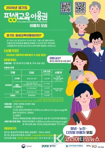 코리아타임뉴스 기동취재팀 | 김포시는 ‘2026년 평생교육이용권 사업’을 통해 교육 소외계층 성인을 대상으로 평생교육 강좌 수강료 및 교재비 등을 지원한다.