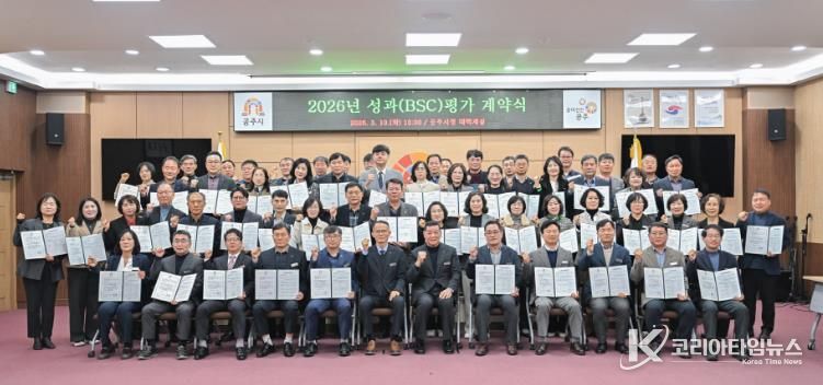 코리아타임뉴스 충남취재본부 | 공주시는 지난 10일 시청 대백제실에서 국·소장 등 5급 이상 간부 공무원 61명을 대상으로 성과과제 계약을 체결했다고 밝혔다.