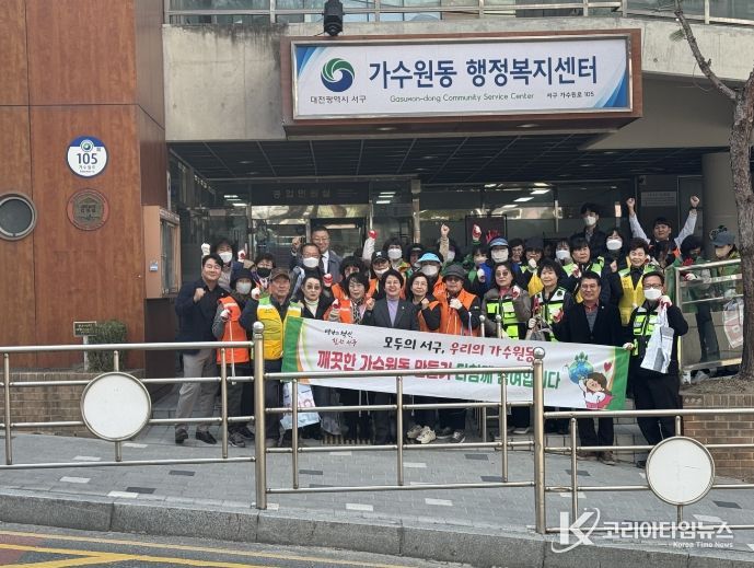 코리아타임뉴스 대전취재본부 | 대전 서구 가수원동 행정복지센터는 청사와 상점가 및 가수원초등학교 일원에서 봄맞이 환경정화 캠페인을 펼쳤다고 12일 밝혔다.