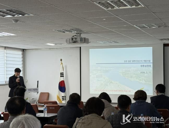 코리아타임뉴스 기동취재팀 | 여주시는 강천 걸은 일반산업단지 및 준용사업에 대하여, '산업단지 인ㆍ허가 절차 간소화를 위한 특례법'제9조에 따라 3월 11일 강천면 행정복지센터 대회의실에서 주민 합동설명회를 개최, 주민들에게 설명하고 의견을 듣는 자리를 마련했다. 주민설명회에는 산업단지 조성에 대한 토지주 및 이해관계자, 지역주민 등 30여 명이 참석해 성황을 이뤘다.