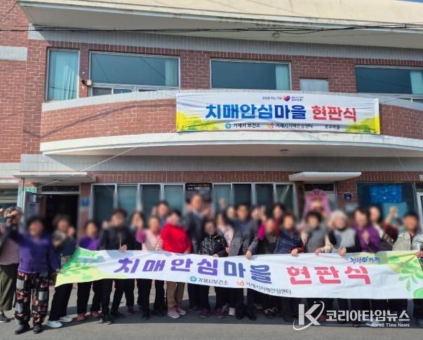 코리아타임뉴스 경남취재본부 | 거제시치매안심센터는 지난 11일 거제면 오수경로당에서 제14호 거제면 오수리 치매안심마을 현판식을 개최했다.