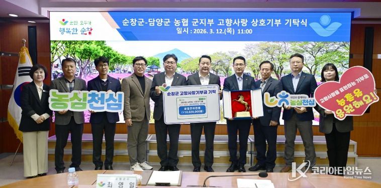 코리아타임뉴스 김태훈 기자 | 순창군과 담양군 농협군지부는 12일 고향사랑기부금 총 1,002만원을 상호기부하는 전달식을 가졌다.
