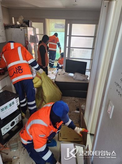 코리아타임뉴스 경기취재본부 | 시흥시 장곡동은 지난 3월 12일 LH19단지에서 집안의 오물과 쓰레기 적치로 주변 가구까지 피해를 주고 있는 주거환경 취약가구에 명성환경(자)과 함께 주거 환경 개선 사업을 실시했다.