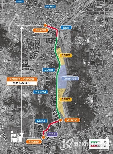 핵심사업은 ▲정거장 신설 및 개량 ▲전용차로 신설(유성온천역~만년교, 용소삼거리~건양대병원)이며 9월 준공 예정이다.