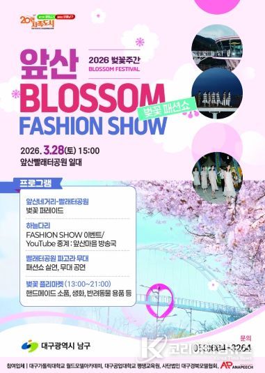 코리아타임뉴스 대구취재본부 | 대구 남구는 오는 3월 28일 지역의 대표 관광명소인 앞산빨래터공원에서 벚꽃패션쇼 이벤트를 개최한다고 밝혔다.