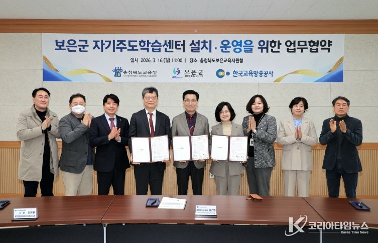 코리아타임뉴스 충북취재본부 | 충북 보은군은 16일 보은교육지원청에서 충청북도교육청, 한국교육방송공사(EBS)와 보은군 자기주도학습센터 설치·운영을 위한 업무협약을 체결했다.