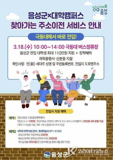 코리아타임뉴스 충북취재본부 | 음성군이 새 학기를 맞아 18일 관내 대학인 극동대학교 캠퍼스를 직접 찾아가 학생들의 전입을 돕는 ‘찾아가는 주소이전 서비스’를 운영했다고 밝혔다.