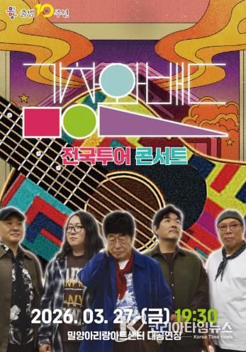 코리아타임뉴스 오영주 기자 | 밀양문화관광재단은 오는 27일 밀양아리랑아트센터 대공연장에서 재단 출범 10주년을 기념하는 특별 공연 ‘김창완밴드 전국 투어 콘서트’를 개최한다.