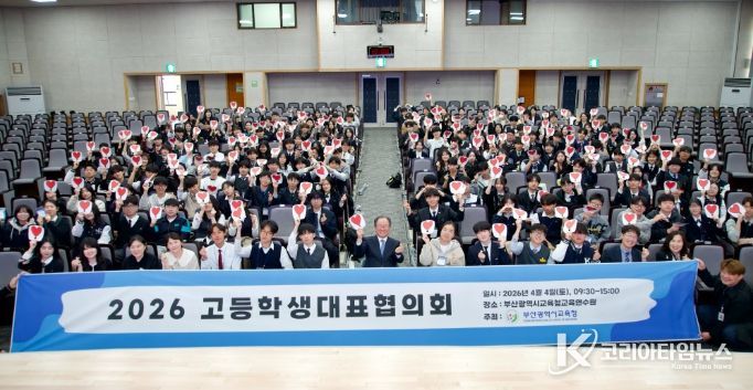 코리아타임뉴스 사회팀 | 부산광역시교육청은 지난 4일 오후 연제구 교육연수원에서 부산 지역 고등학생 대표 170여 명이 참여한 ‘2026년 고등학생대표협의회’를 개최했다.