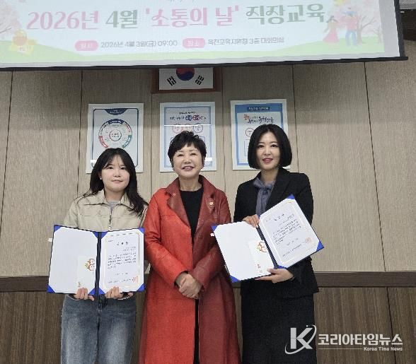 코리아타임뉴스 사회팀 | 충청북도옥천교육지원청은 4월 3일, 청렴한 공직사회 구현과 친절한 조직문화 조성에 기여한 ‘청렴 우수직원’과 ‘OK-Edu 친절직원’ 표창을 수여했다.