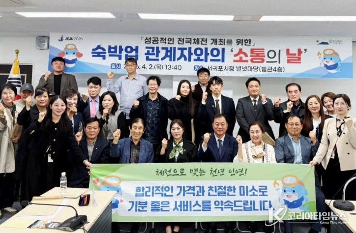 코리아타임뉴스 노승선 기자 | 서귀포시는 2026년 전국(장애인)체전의 성공적인 개최를 앞두고 지역 숙박업계와의 현장 소통을 강화하며 관광수용태세 개선에 본격 나서고 있다.