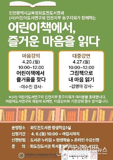프로그램은 총 2회 과정으로 구성되며, 4월 20일 ‘어린이책에서 즐거움을 찾다’와 27일 ‘그림책으로 내 마음 읽기’를 주제로 강연이 진행된다.