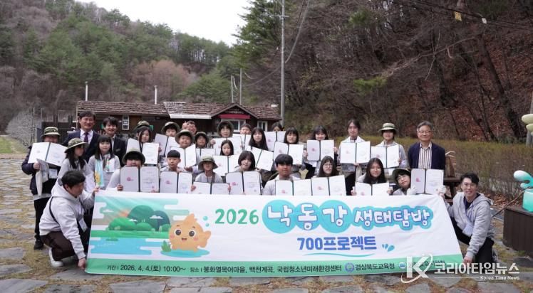코리아타임뉴스 사회팀 | 봉화교육지원청은 2026년 4월 4일 국립청소년미래환경센터와 열목어마을 일대에서 학생들의 생태 감수성과 환경 보호 의식을 높이기 위한 ‘낙동강 생태탐방 700 프로젝트’를 운영했다.