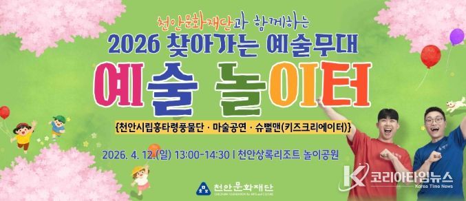 코리아타임뉴스 김택호 기자 | 천안문화재단은 오는 12일 천안상록리조트 놀이공원 일원에서 ‘예술놀이터’를 운영한다고 7일 밝혔다.