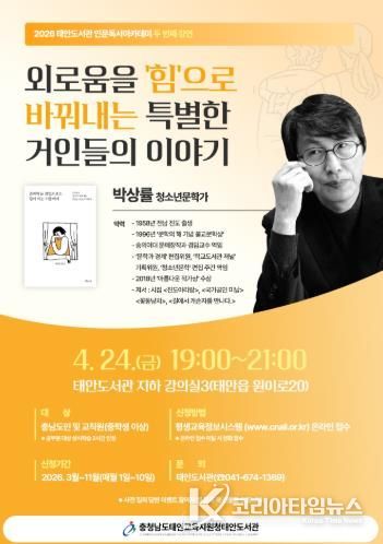 코리아타임뉴스 사회팀 | 충청남도태안교육지원청태안도서관은 오는 24일 오후 7시 도서관 지하 강의실3에서 ‘외로움을 힘으로 바꿔내는 특별한 거인들의 이야기’를 주제로 인문 독서 아카데미를 운영한다.