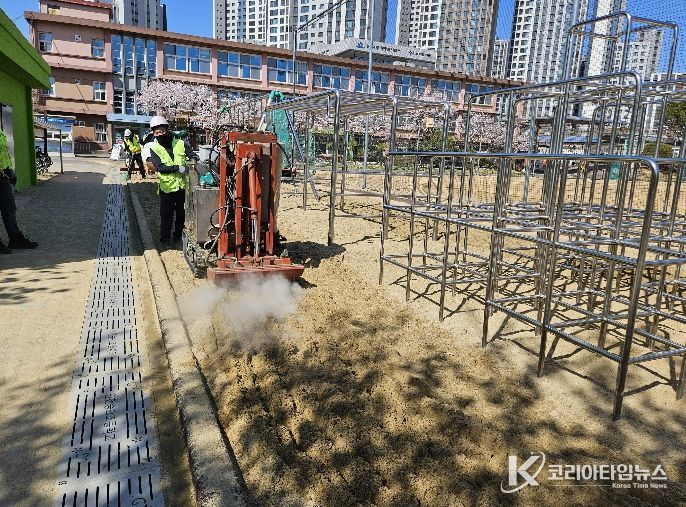특히 전문 업체에서 놀이기구와 바닥재를 고온·고압의 스팀으로 소독하고 모래 바닥재 기생충(란) 검사도 병행 지원하여 학교 행정업무 부담이 경감될 것으로 기대된다.