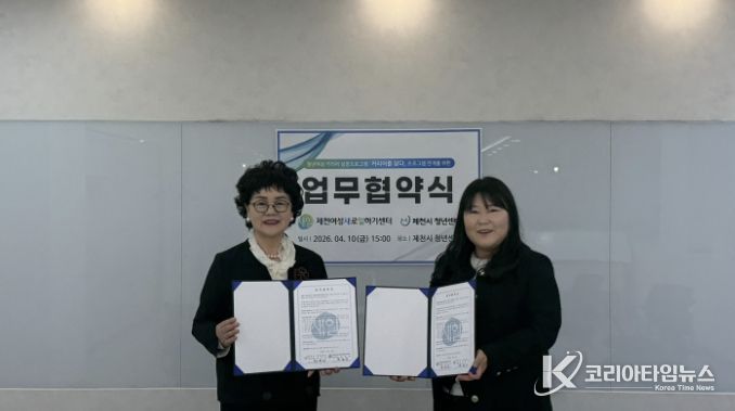 코리아타임뉴스 충북취재본부 | 제천여성새로일하기센터와 제천시 청년센터는 지난 10일 청년과 여성의 고용 활성화와 경력단절 예방을 위한 상호협력 업무협약을 체결했다.
