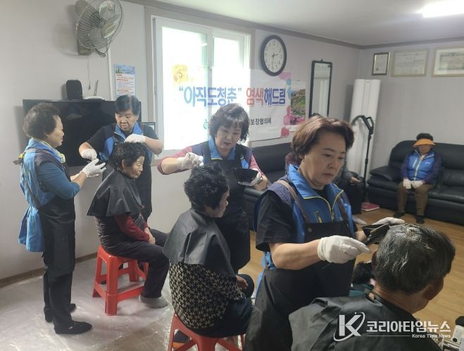 코리아타임뉴스 충북취재본부 | 동이면 지역사회보장협의체는 천사복지센터 김기정 센터장과 함께 소도리 경로당에서 ‘아직도 청춘! 염색해 드림’ 특화사업을 추진했다고 밝혔다.