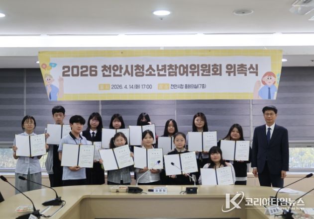 코리아타임뉴스 김택호 기자 | 천안시와 천안시청소년재단이 청소년들의 시정 참여 기회를 확대하고 정책 실효성을 높이기 위해 ‘2026년 천안시청소년참여위원회’를 본격 가동한다고 15일 밝혔다.