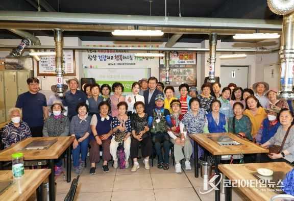 코리아타임뉴스 대구취재본부 | 남산4동 지역사회보장협의체(위원장 이복출)와 동동배식당(대표 정연달)은 14일 가수 이효진을 초대해 홀로어르신 30명을 모시고 생신상 차려드리기 행사를 개최했다.