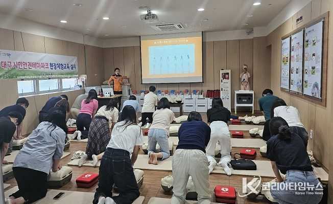 코리아타임뉴스 대구취재본부 | 대구 동구청은 지난 6월 4일부터 28일까지, 대구시민안전테마파크에서 총 7회에 걸쳐 응급처치체험 교육을 실시했다.
