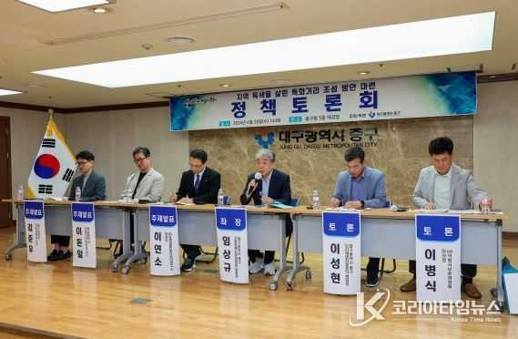 코리아타임뉴스 대구취재본부 | 대구 중구는 지난 26일 구청 대강당에서 지역 특색살린 특화거리 조성 방안을 마련하기 위한 정책토론회를 개최했다.