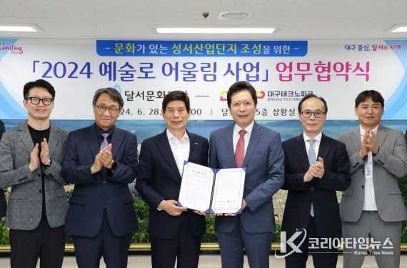 코리아타임뉴스 대구취재본부 | (재)달서문화재단이 6월 28일 달서구청에서 (재)대구테크노파크와 ‘2024 예술로 어울림’ 사업추진을 위한 업무협약을 체결했다.