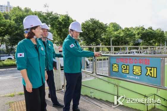 코리아타임뉴스 대구취재본부 | 대구 중구는 1일 국지성 집중호우와 폭염 등 여름철 자연재난으로부터 구민의 안전을 보호하기 위해 신천둔치 진출입로, 신천지하차도 배수펌프장 등 관련 현장을 사전 점검했다.