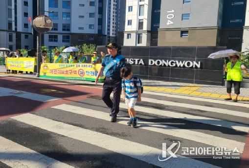 코리아타임뉴스 대구취재본부 | 대구 동구 신천4동 안전협의체는 지난 5일, 대구효신초등학교에서 교통안전 합동캠페인을 실시했다. 캠페인은 효신초등학교와 동대구지구대가 함께했다.