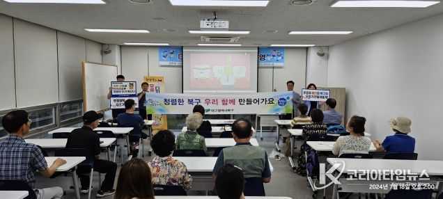 코리아타임뉴스 대구취재본부 | 대구 북구청은 2024 고용노동부 공모사업으로 매주 목요일마다 구수산도서관에서 진행하는 디지털 강사단 정보화교육에 앞서 청렴 홍보 캠페인 전개 및 청렴 동영상 교육을 진행했다.