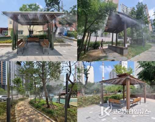 구는 올해 파고라 뿐 아니라 공원 산책로 주변에 쿨링포그를 시범설치해 야간에도 공원을 산책하는 주민들이 쾌적한 환경에서 이동할 수 있도록 개선했다.