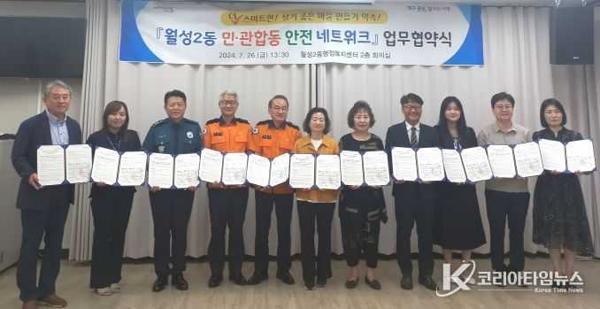 코리아타임뉴스 대구취재본부 | 대구 달서구 월성2동은 26일 2층 회의실에서 10개 유관기관과 월성2동 안전협의체 등이 안전하고 살기좋은 마을을 만들고자 '월성2동 민관합동 안전 네트워크'안전지킴 업무 협약을 맺었다.