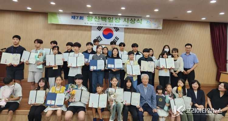코리아타임뉴스 윤경수 기자 | 구미시는 지난 28일 왕산허위선생기념관에서 사단법인 왕산기념사업회 주관으로 수상자와 가족 등 100여 명이 참석한 가운데 ‘제7회 왕산백일장’ 시상식을 개최했다.
